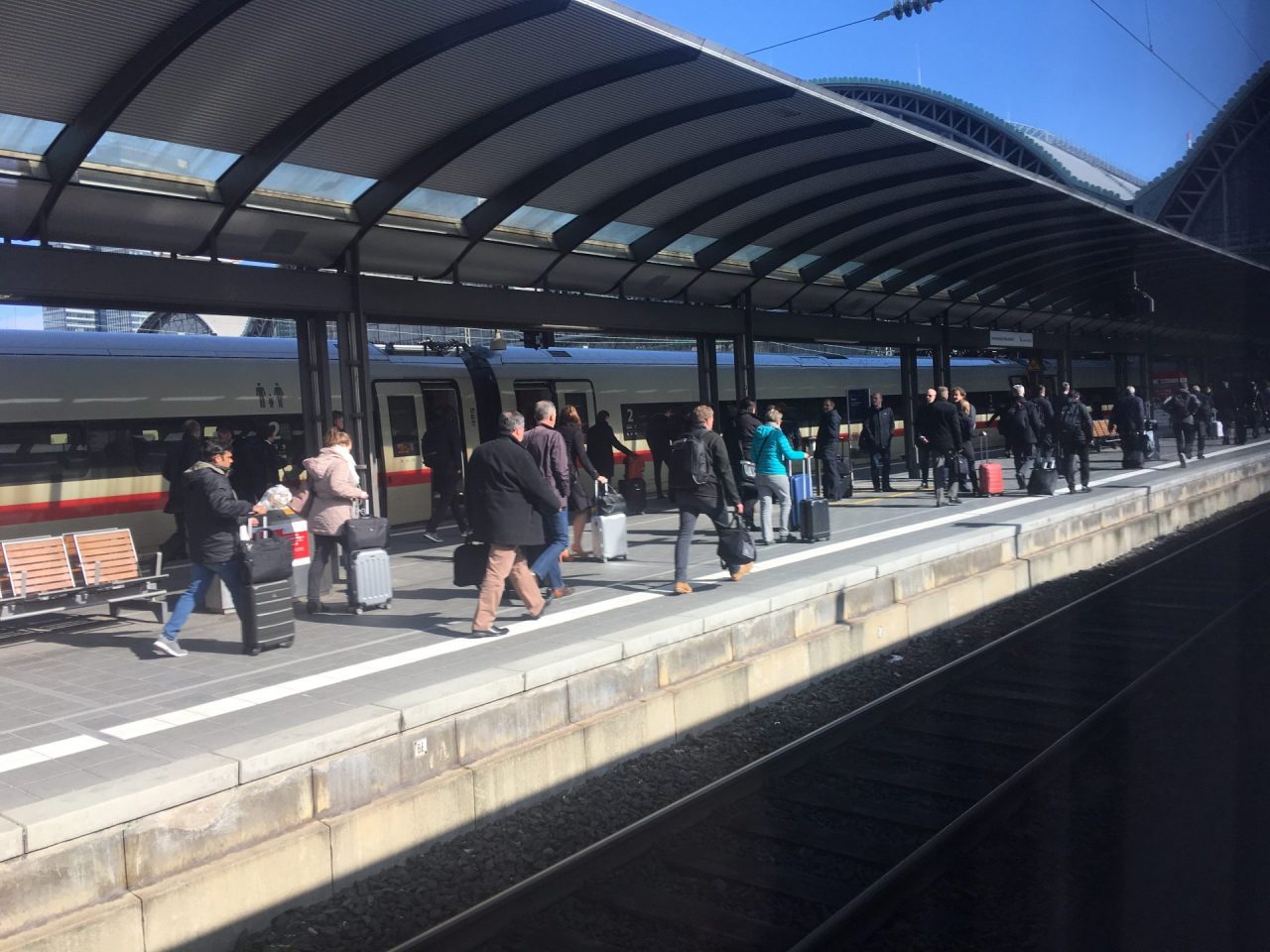 領完行李之後,我們就從 Terminal 2 搭到 Terminal 1,準備搭上前往紐倫堡的 ICE。不過因為當初很怕趕不上,換車時間抓得比較寬裕, 結果就是我們在等車的地方等了 1.5 個小時,而且抵達的時間還誤點了約 30 分鐘。😂