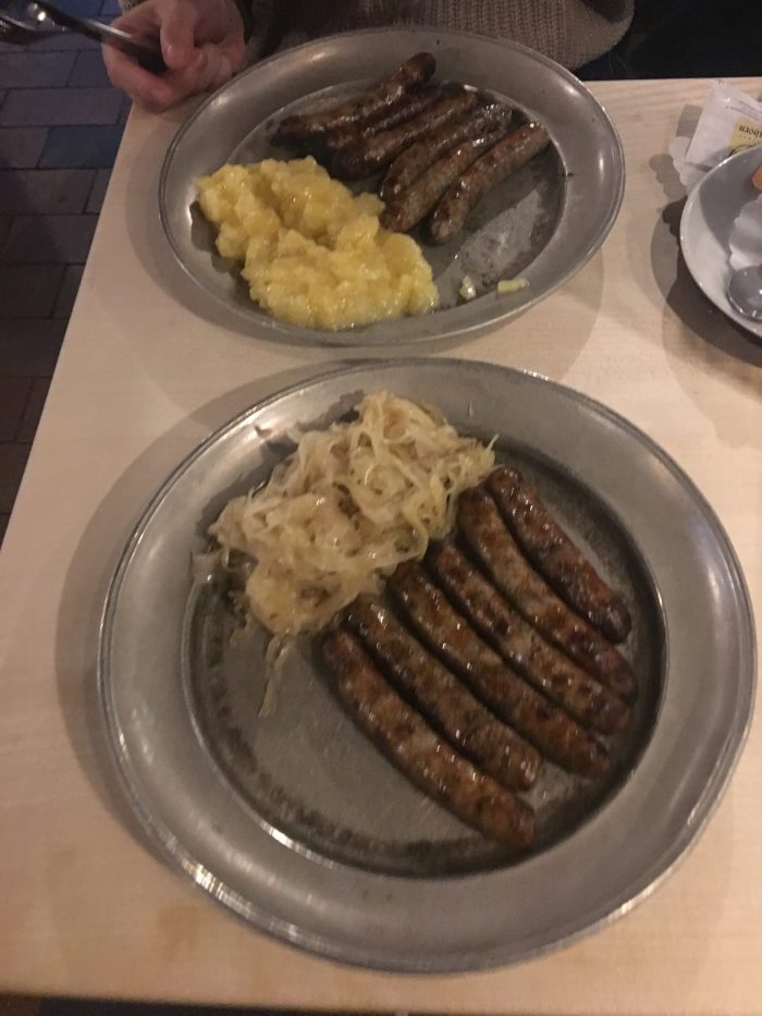 放完行李後我們就穿過 pegnitz river 內的 shopping area,直接往河外走去吃了紐倫堡的百年香腸店:Bratwursthäusle bei St. Sebald。